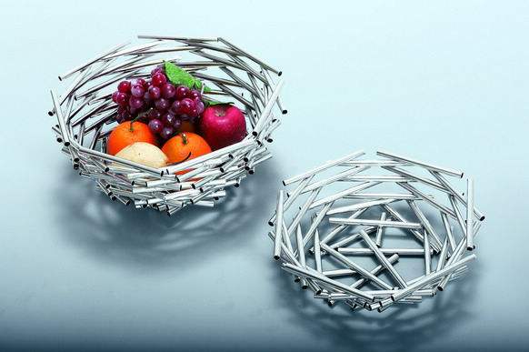 不銹鋼果盤利用金屬板塊進行激光切割機激光切割,在用激光焊接機焊接在一起,確保更堅固耐用。通過穿過幾何元素之間的空隙,創(chuàng)造出一種神奇的光和陰影效果。