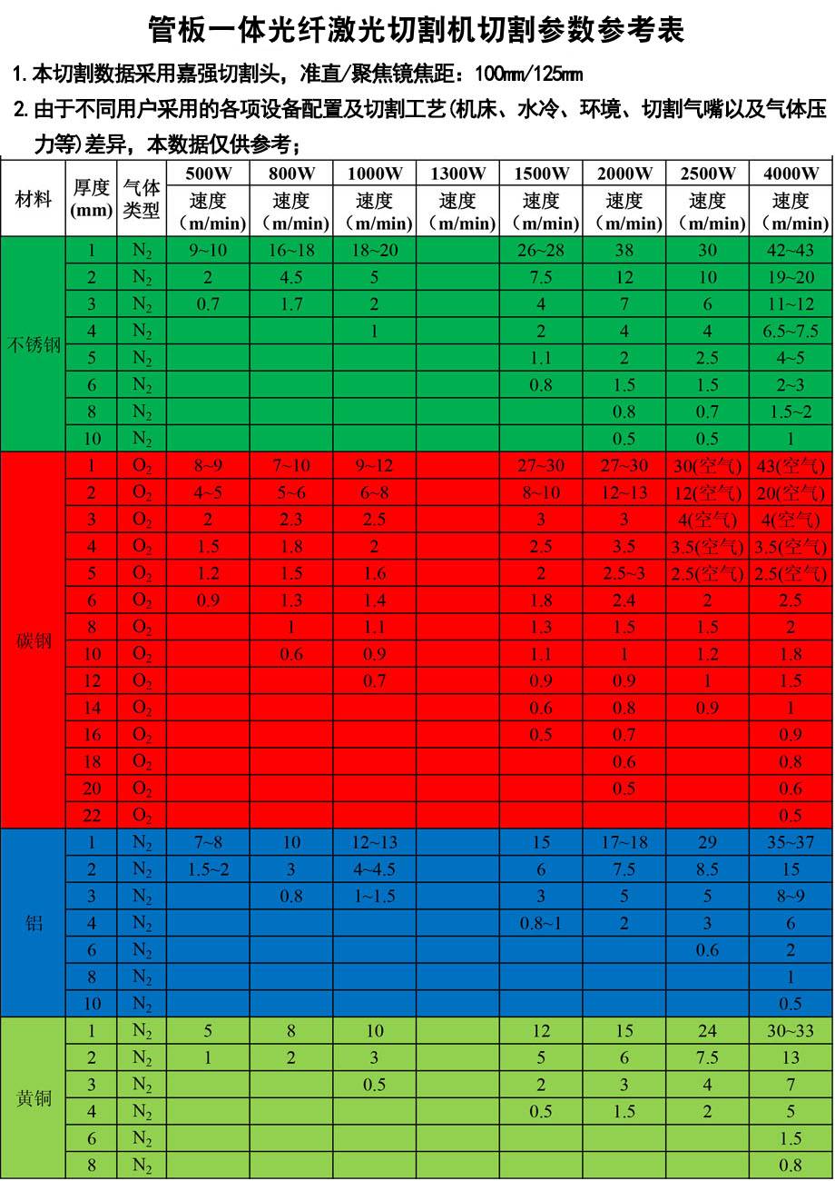 (一機兩用)管板一體光纖激光切割機設備切割材質及范圍